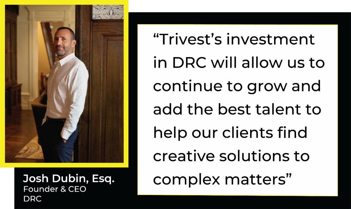 “For 22 years we’ve been able to grow through our relationships, but we’ve reached an inflection point where we needed to find the right partner to bring onboard. Trivest’s investment in DRC will allow us to continue to grow and add the best talent to help our clients find creative solutions to complex matters,” said Josh Dubin.